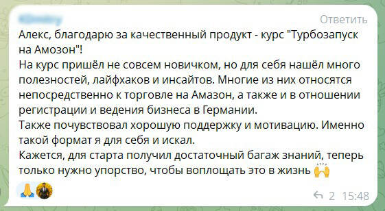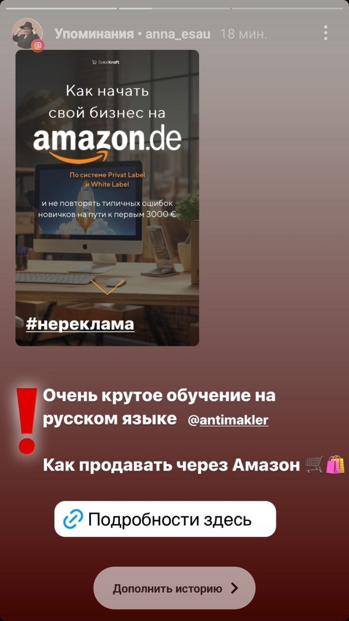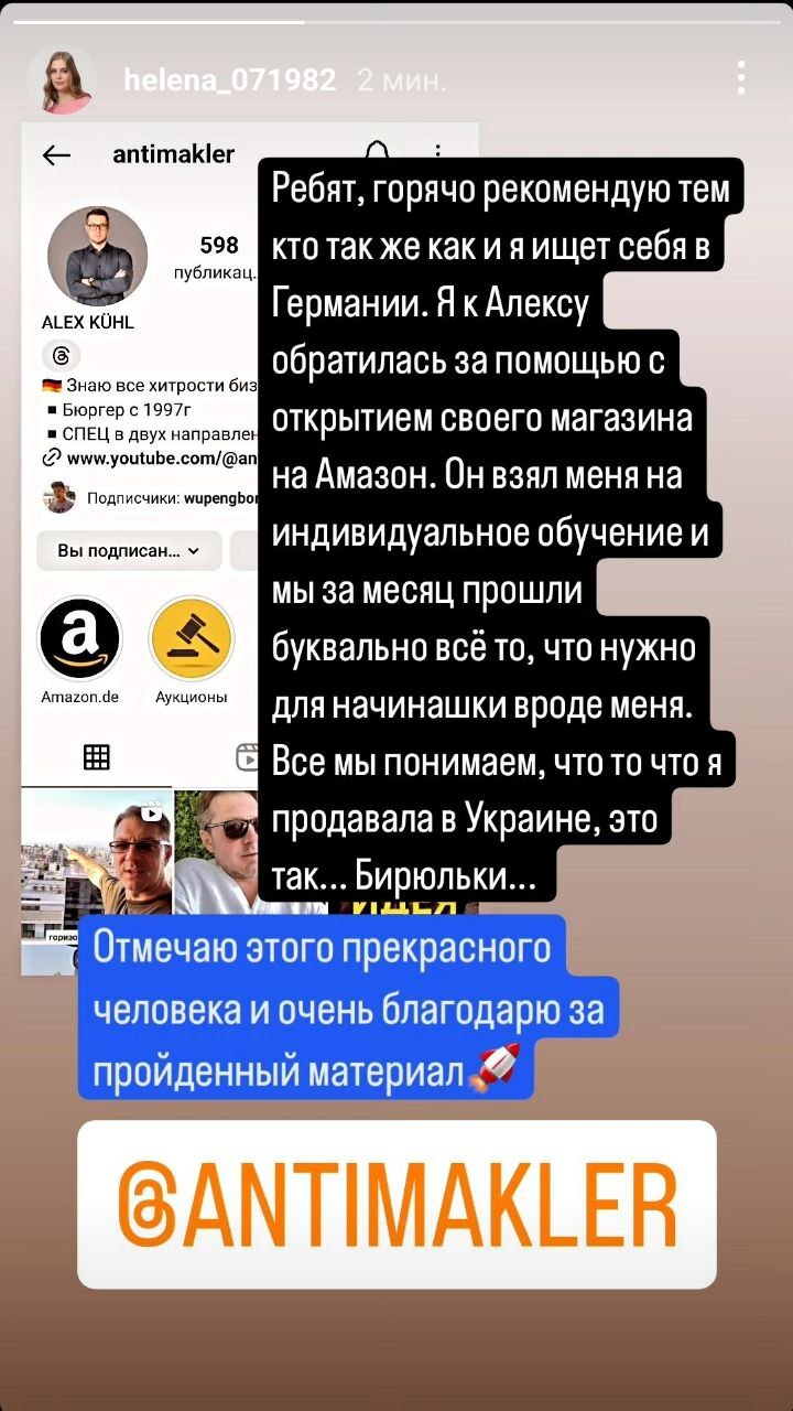 Практик с опытом с 2019 года - опыт в бизнесе на ведущих маркетплейсах Германии: Amazon, Ebay, Otto.